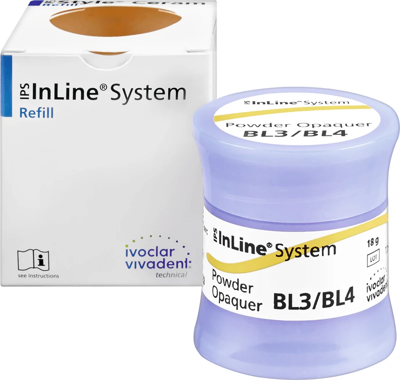 Der IPS InLine® System Pulveropaquer ist ein in einem neuen Herstellungsverfahren entwickelter Pulveropaquer mit optimierten Eigenschaften für die metallkeramische Schicht und Presstechnik. Der IPS InLine® System Pulveropaquer ist abgestimmt auf aufbrennfähige Legierungsgerüste hergestellt mittels der Guss, CAD/CAM und Laser Schmelz Technik.