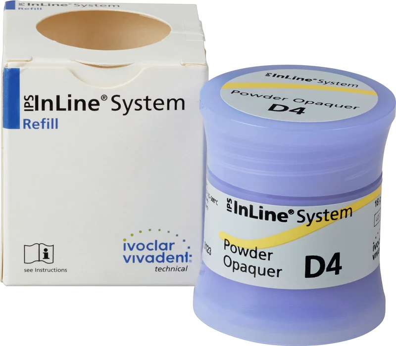 Der IPS InLine® System Pulveropaquer ist ein in einem neuen Herstellungsverfahren entwickelter Pulveropaquer mit optimierten Eigenschaften für die metallkeramische Schicht und Presstechnik. Der IPS InLine® System Pulveropaquer ist abgestimmt auf aufbrennfähige Legierungsgerüste hergestellt mittels der Guss, CAD/CAM und Laser Schmelz Technik.