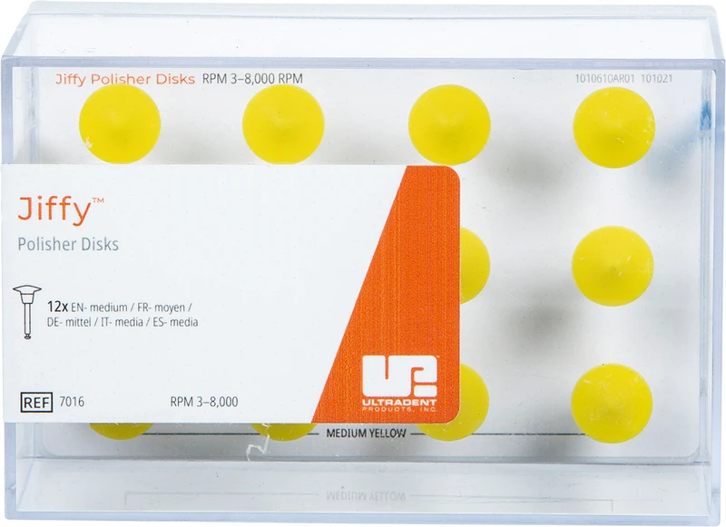 Das Jiffy Original Verbundsystem besteht aus hochwertigen Polierbechern, Spitzen, Scheiben und Bürsten. Die Polierer verfügen über unsere speziell formulierte Körnung, die jedem Verbundmaterial ein schönes Finish verleiht, und sind in groben, mittleren und feinen Körnungen für eine schnelle und vollständige Formgebung jeder Verbundrestauration erhältlich. Die Polierbecher verfügen über ein ausgestelltes, flexibles, dünnwandiges Design, das sich ideal zum Polieren in der Nähe der Gingiva eignet. Jiffy HiShine Polierer mit ultrafeiner Körnung sind ebenfalls erhältlich, um ein extra glattes und hochglanzpoliertes Finish zu erzielen.
