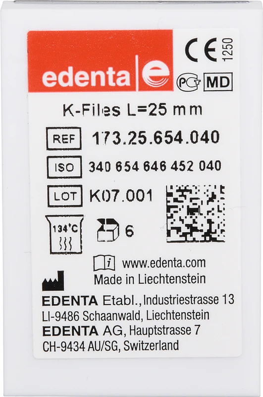 Produktinformationen "K-Feile 173 Packung 6 Stück 25 mm, ISO 040"