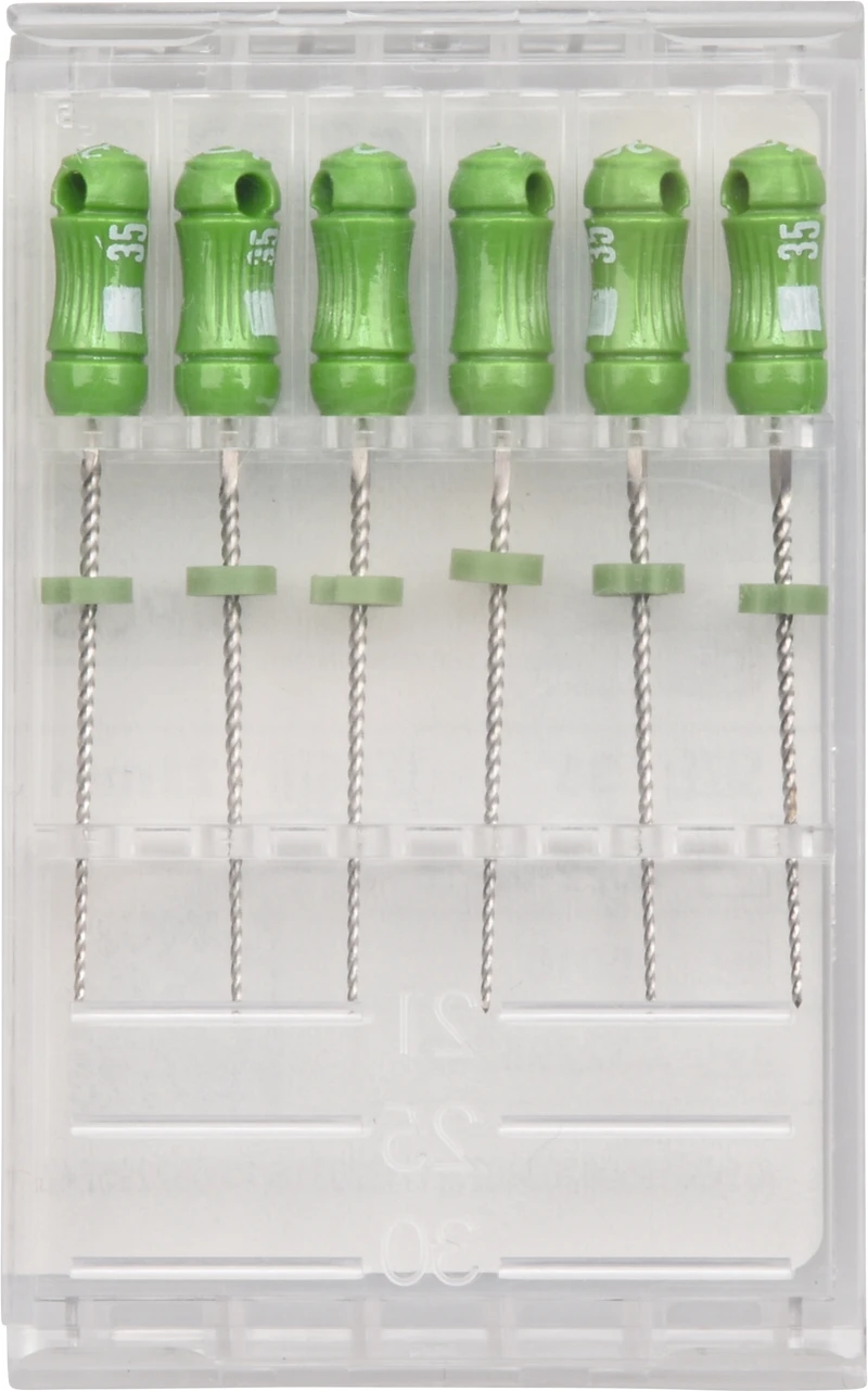 Die K-Feile ist die stärkste unter den Handfeilen mit geringem Bruchrisiko. Mit K-Feilen können Obliterationen wesentlich einfacher überwunden werden.Sie wurden mit dem Ziel entwickelt, während der Instrumentierung ein geschmeidiges, taktiles Gefühl zu erzeugen.