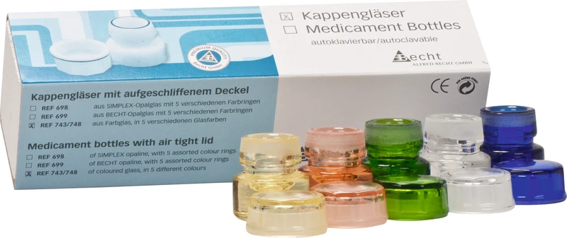 Für die Aufbewahrung von Arzeimitteln. Unterschiedliche Farbmarkierungen schützen vor der Verwechslung des Inhaltes. Der griffsichere Deckel schließt das Kappenglas luftdicht ab. Die ausgewölbte Innenform ermöglicht die vollständige Entnahme des Medikamentes. 32 mm Bodendurchmesser, 42 mm hoch, 3 ml Fassungsvermögen.