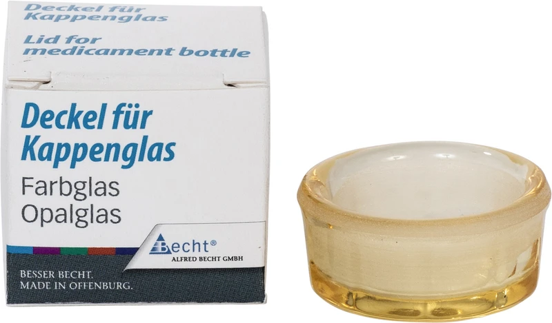 Für die Aufbewahrung von Arzeimitteln. Unterschiedliche Farbmarkierungen schützen vor der Verwechslung des Inhaltes. Der griffsichere Deckel schließt das Kappenglas luftdicht ab. Die ausgewölbte Innenform ermöglicht die vollständige Entnahme des Medikamentes. 32 mm Bodendurchmesser, 42 mm hoch, 3 ml Fassungsvermögen.