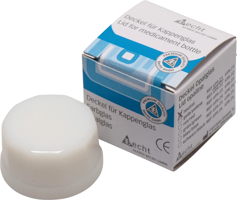 Für die Aufbewahrung von Arzeimitteln. Unterschiedliche Farbmarkierungen schützen vor der Verwechslung des Inhaltes. Der griffsichere Deckel schließt das Kappenglas luftdicht ab. Die ausgewölbte Innenform ermöglicht die vollständige Entnahme des Medikamentes. 32 mm Bodendurchmesser, 42 mm hoch, 3 ml Fassungsvermögen.