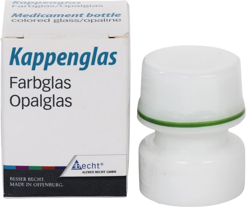 Für die Aufbewahrung von Arzeimitteln. Autoklavierbar. Mit farbiger Beringung am oberen Rand des Unterteils und am unteren Rand des Deckels für die Aufbewahrung in Schubfächern. Unterschiedliche Farbmarkierungen schützen vor der Verwechslung des Inhalts. Der griffsichere Deckel schließt das Kappenglas luftdicht ab. Die ausgewölbte Innenform ermöglicht die vollständige Entnahme des Medikamentes. 32 mm Bodendurchmesser, 42 mm hoch, ca. 3 ml Fassungsvermögen.
