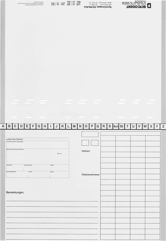 Patientenkartei / Behandlungskartei mit eingezogener Heftzunge. Original BEYCODENT Karteimappe.