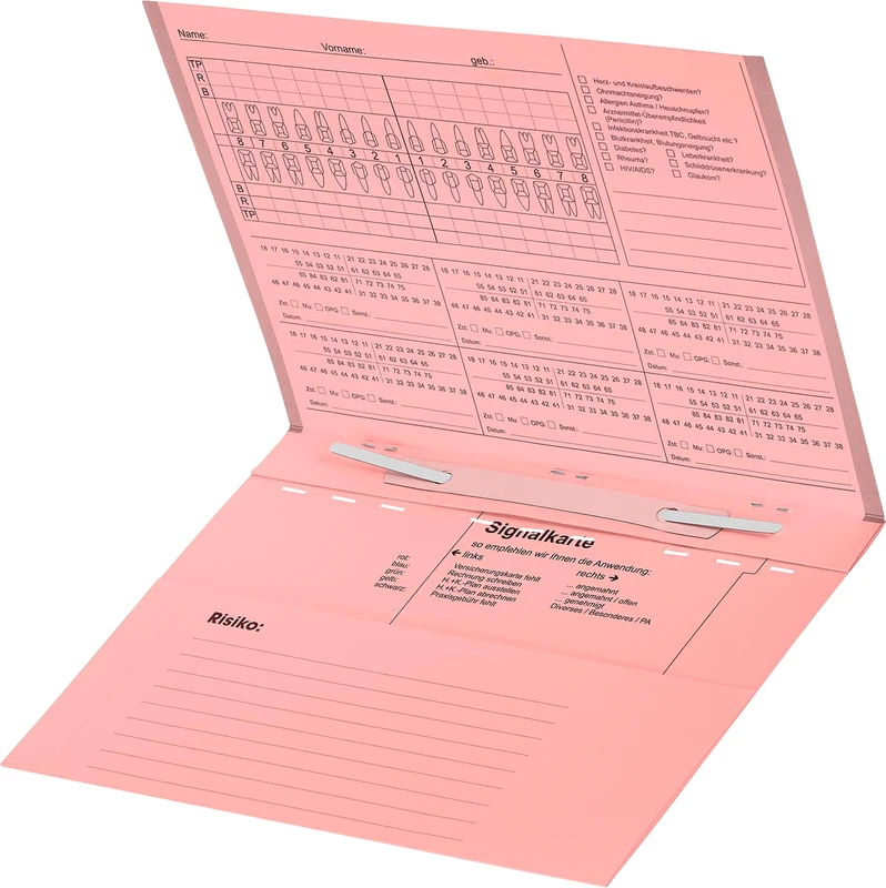- Diese Zahnarztkartei ist mit bereits eingezogener Heftzunge, - für durchdachte Auswahl Einlegeblätter