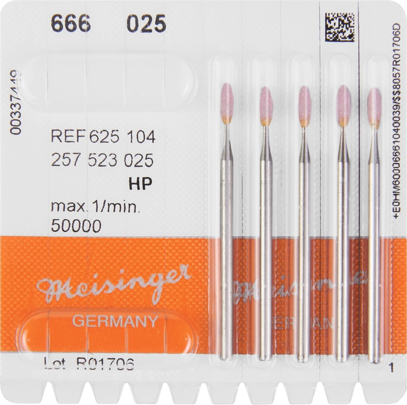 Packung 5 Schleifer rosa mittel, HP, Figur 257, Kopflänge: 6,5 mm, ISO 025