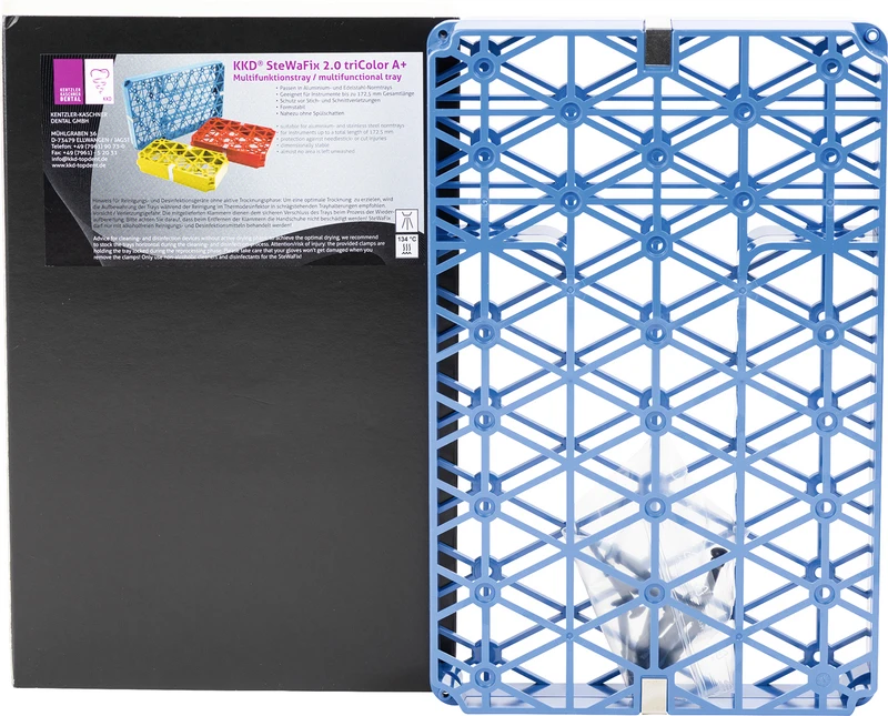 Das SteWaFix Multifunktionstray wurde als Normtrayeinsatz konzipiert, der aus zwei übereinander liegenden Instrumentenablagegabeln besteht. Der Normtrayeinsatz kann als Waschtray im Thermodesinfektor verwendet werden und ist autoklavierbar. Die Kunststoffausführung des Trays schützt die grazilen Instrumentenspitzen vor Beschädigungen. Die Instrumente liegen frei in Fixiermulden, was ein optimales Reinigungsergebnis garantiert. Auf Silikonleisten wird bei den SteWaFix Trays bewusst verzichtet. Weitere Ausführungen als 1/2 und 1/3 Tray erweitern die Einsatzmöglichkeiten. 3 Farbvarianten ermöglichen ein Codiersystem nach Behandlungszimmern oder Einsatzgebiet.