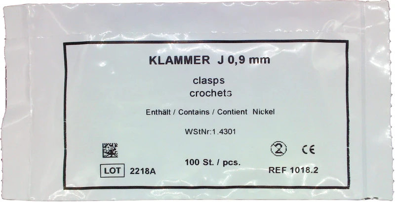 Packung 100 J-Klammern, gerade, Ø 0,9 mm