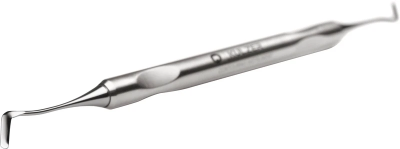 Die hochpolierten Instrumente sind ergonomisch geformt und bestehen aus einzigartigem rostfreiem Chromium-Nickel-Stahl. Unser universelles Stopf-Instrument kombiniert einen Spatel (Größe Medium) mit einem kleinen birnenförmigen Tip. Damit ist es für das Anlegen, Stopfen, Schichten und Formen von Konturen bestens geeignet. Dank der Kompositspatel an den beiden Enden des Konturen-Instruments kann das Komposit ganz einfach platziert werden. Auch Konturen sind damit leicht zu formen.