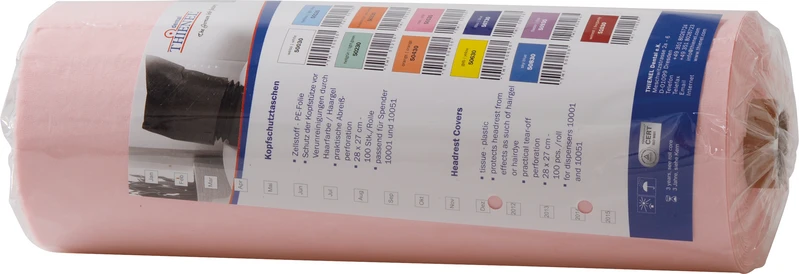Zellstoff - PE-Folie. Schutz der Kopfstütze vor Verunreinigungen. Farblich passend zu unseren Patientenumhängen. Praktische Abreißperforation.