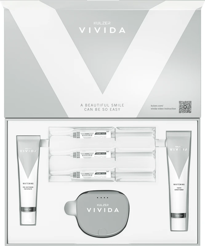 Das Bleaching-System Kulzer Vivida bietet eine sanfte und effektive Zahnaufhellung auf einem neuen Niveau. Kulzer Vivida ist für die Anwendung zuhause nach einer zahnärztlichen Beratung konzipiert und bietet für unterschiedliche Bedürfnisse eine Lösung, die Komfort, Wirksamkeit und Sicherheit vereint. Dank der einzigartigen Wasserstoffperoxid-Superior-Technologie (HPS) reduziert dieses moderne System die Empfindlichkeit, ermöglicht schnelle Ergebnisse in nur 15-30 Minuten und ist einfach in der Anwendung ohne Kühlung.