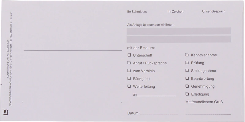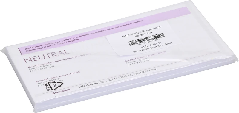 Produktinformationen "Kurzmitteilung DL Packung 100 Stück 21 cm x 10,5 cm, 1-fach"