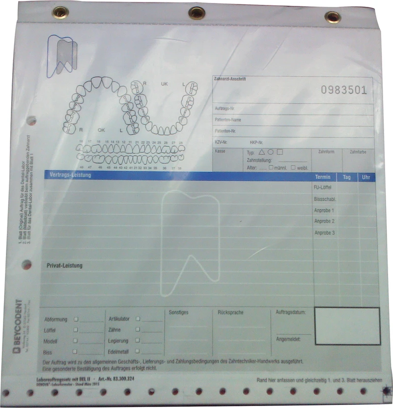 Der professionelle Auftragssatz für Zahnarzt und Dental-Labor mit Feld XML-Auftrags-Nr..