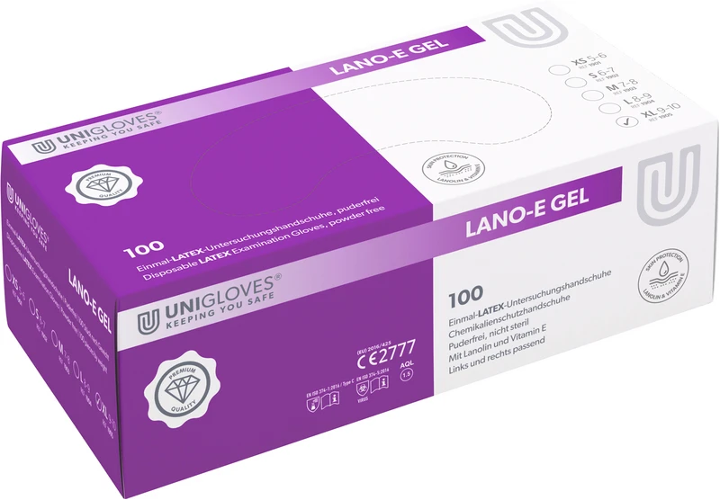 Produktinformationen "LANO-E GEL® Packung 100 Stück puderfrei, naturlatex, XL"