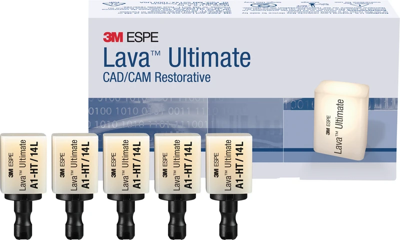 Sehr gute Haltbarkeit und Funktionseigenschaften: Das 3M Lava Ultimate CAD/CAM Restaurationsmaterial aus Resin-Nanokeramik dient der definiten Versorgung und ist für die Fertigung in CEREC und inLab Schleifmaschinen gedacht.