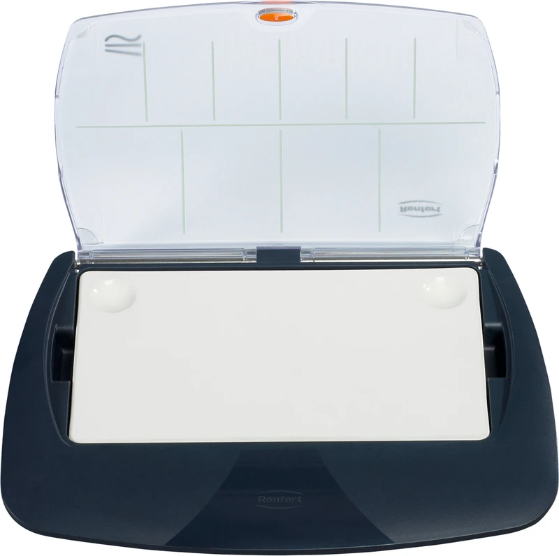 Kompetenz 2.0: die berühmte Benchmark aus dem Hause Renfert nochmals verbessert. Das diffusionsfähige Plattenmaterial versorgt die Keramikmassen kontinuierlich mit der richtigen Menge an Flüssigkeit. Gleichmäßige Konsistenz der Massen im gesamten Arbeitsprozess: kein Austrocknen oder Nachfeuchten, jedes Gramm Keramik wird genutzt - das spart Material und Kosten. Große Arbeitsfläche mit 2 glasierten Mulden für individuelle Platzeinteilung und hohen Freiheitsgrad. XL - viel Raum für optimalen Überblick und effizientes Arbeiten. S - perfekte Größe, wenn weniger Platz zur Verfügung steht. Die gegenüber der Vorgängerversion geglättete, hochverdichtete Oberfläche schont das Pinselhaar.