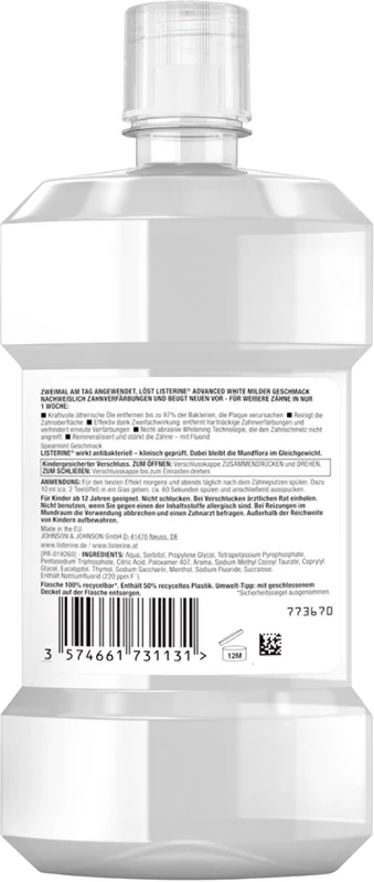 Produktinformationen "LISTERINE® ADVANCED WHITE MILDER GESCHMACK Flasche 500 ml"