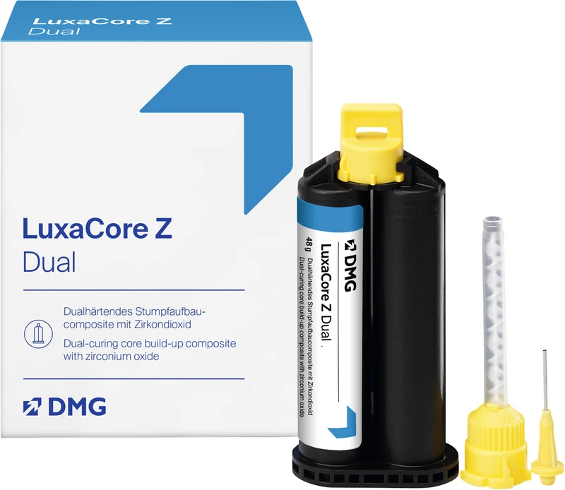 Premium-Composite speziell für Stumpfaufbauten sowie zur Befestigung von Wurzelstiften. Durch seine einzigartigen naturnahen Materialeigenschaften lässt sich LuxaCore Z beschleifen wie Dentin. Aufgrund des Zirkondioxid-Anteils sind die Werte für Druckfestigkeit und Beschleifbarkeit noch besser als beim vielfach ausgezeichneten LuxaCore.