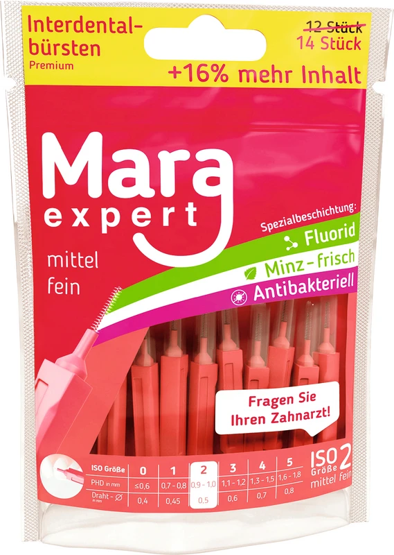 Mara expert Premium Line Promopackung 12 + 2 Stück rot, mittel fein, Ø 0,5 mm