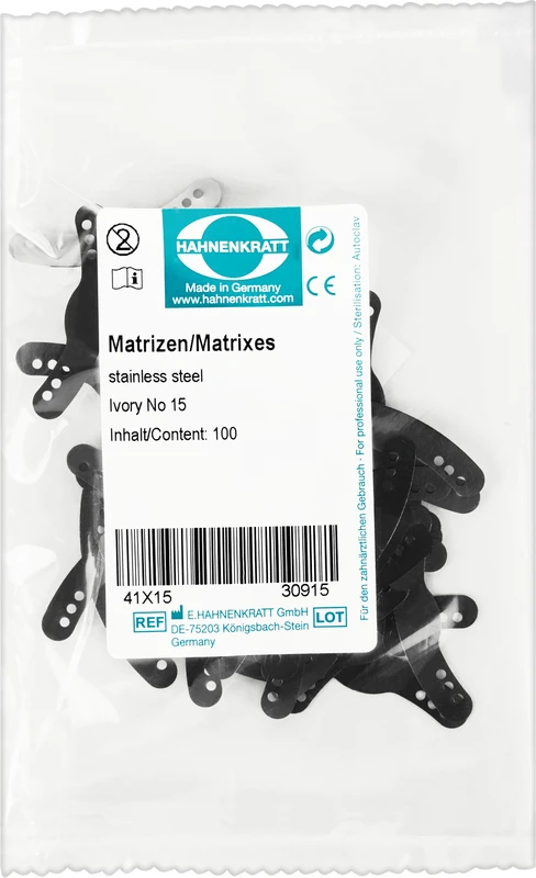 Produktinformationen "Matrizen nach Ivory Packung 100 Stück Stärke 0,04 mm, Nr. 15"