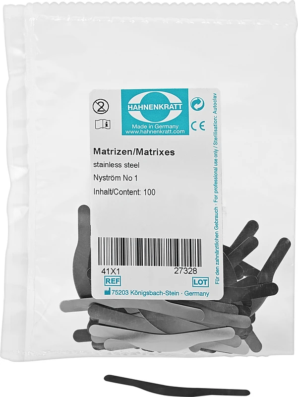 Produktinformationen "Matrizen nach Nyström Packung 100 Stück Stärke 0,04 mm Nr. 1"