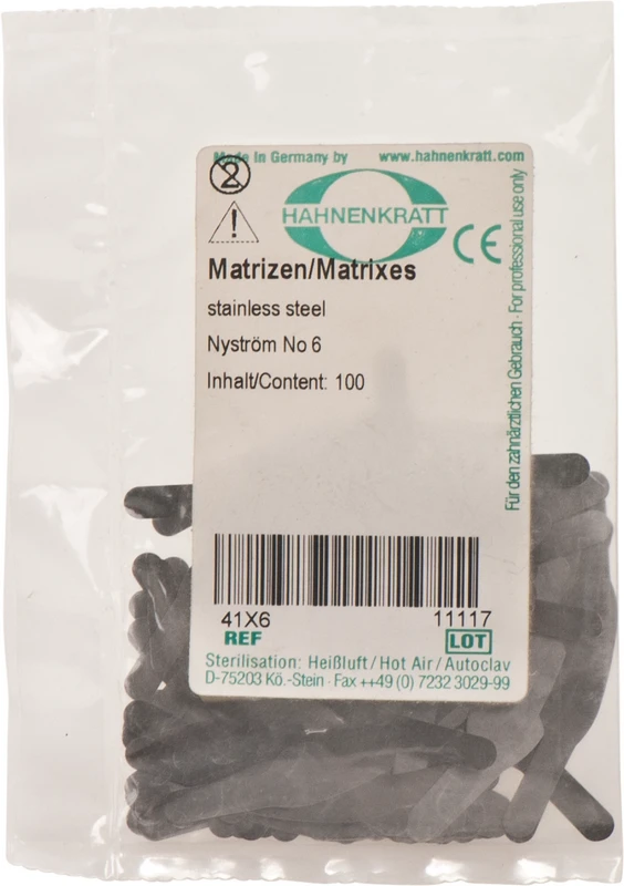 Produktinformationen "Matrizen nach Nyström Packung 100 Stück Stärke 0,04 mm Nr. 6"