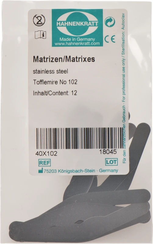 Produktinformationen "Matrizen nach Tofflemire Packung 12 Stück Stärke 0,04 mm Nr. 102"