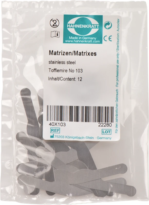 Produktinformationen "Matrizen nach Tofflemire Packung 12 Stück Stärke 0,04 mm Nr. 103"