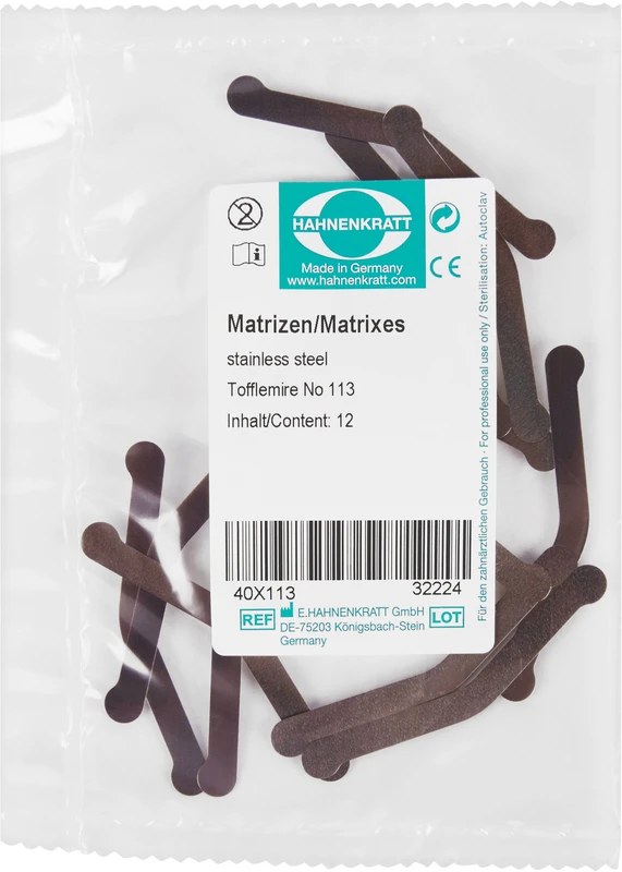 Produktinformationen "Matrizen nach Tofflemire Packung 12 Stück Stärke 0,04 mm Nr. 113"