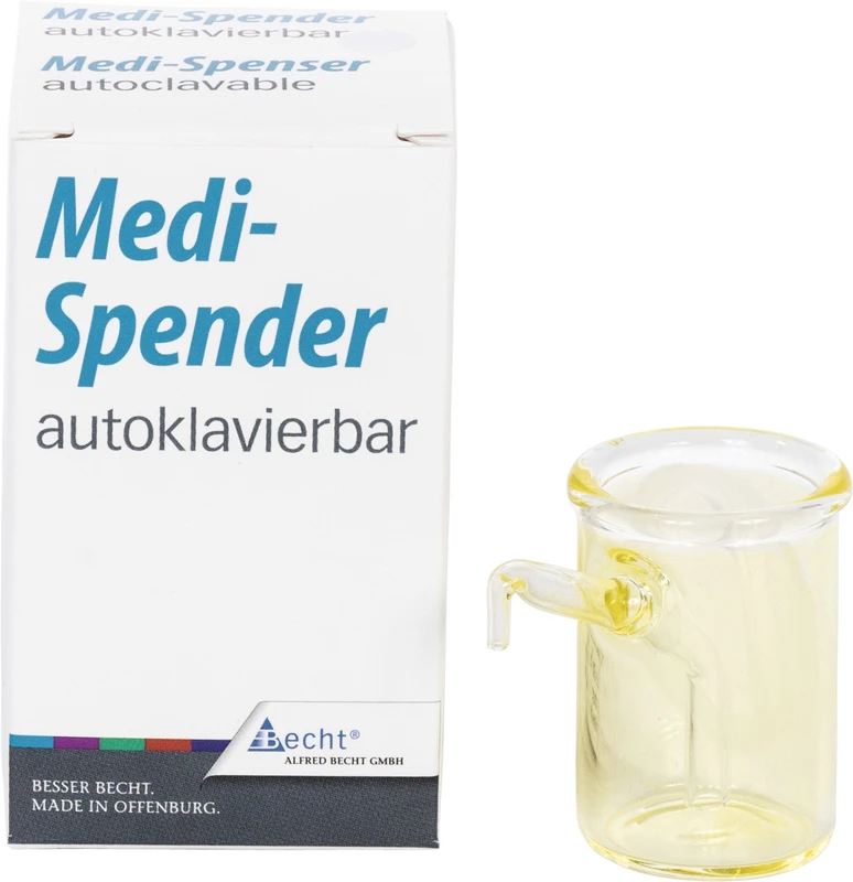 Dosierbare Medikamentengläschen, tropfgenau. Ermöglichen eine hygienische und sparsame Entnahme von Arzeimitteln. Unterschiedliche Einfärbung schützt vor Verwechslung der Arzeimittel. Eine Kontamination des Inhalts wird ausgeschlossen. Aus autoklavierbarem Glas.