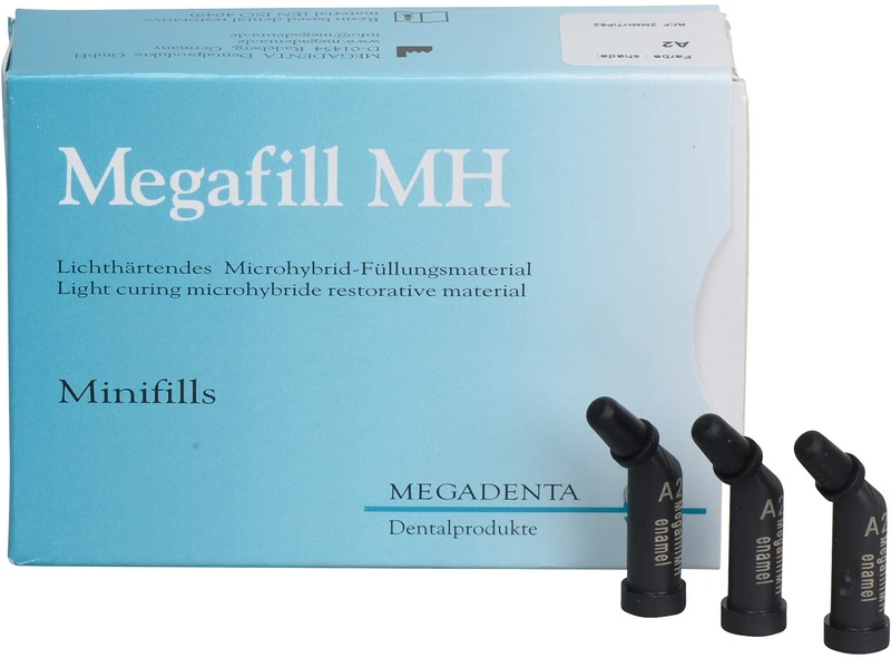 Megafill MH ist ein lichthärtendes Universal- Microhybrid- Composite für Restaurationen im Frontzahn- und Seitenzahnbereich. Durch die gleichbleibend plastische Konsistenz und große Farbauswahl hat das Material hervorragende Verarbeitungseigenschaften und eignet sich sehr gut für die klassische Füllungstherapie und Schichttechnik bei Aufbaufüllungen. Megafill MH ist auf Hochglanz polierbar und ergibt dadurch eine hochästhetische Restauration. Die Füllkörper enthalten feine Dental-Gläser und hochdisperse Siliziumoxide, die speziell behandelt sind und die Oberfläche mit einer hydrophoben Schicht versehen. Die Oberfläche von Megafill MH ist deshalb resistent und geschützt vor Ablagerungen und Verfärbungen. Megafill MH ist röntgenopak und fluoresziert wie die natürlichen Zahnstrukturen unter UV-Licht.