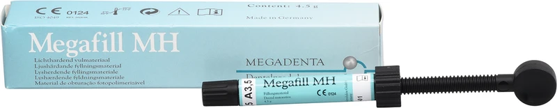 Megafill MH ist ein lichthärtendes Universal- Microhybrid- Composite für Restaurationen im Frontzahn- und Seitenzahnbereich. Durch die gleichbleibend plastische Konsistenz und große Farbauswahl hat das Material hervorragende Verarbeitungseigenschaften und eignet sich sehr gut für die klassische Füllungstherapie und Schichttechnik bei Aufbaufüllungen. Megafill MH ist auf Hochglanz polierbar und ergibt dadurch eine hochästhetische Restauration. Die Füllkörper enthalten feine Dental-Gläser und hochdisperse Siliziumoxide, die speziell behandelt sind und die Oberfläche mit einer hydrophoben Schicht versehen. Die Oberfläche von Megafill MH ist deshalb resistent und geschützt vor Ablagerungen und Verfärbungen. Megafill MH ist röntgenopak und fluoresziert wie die natürlichen Zahnstrukturen unter UV-Licht.