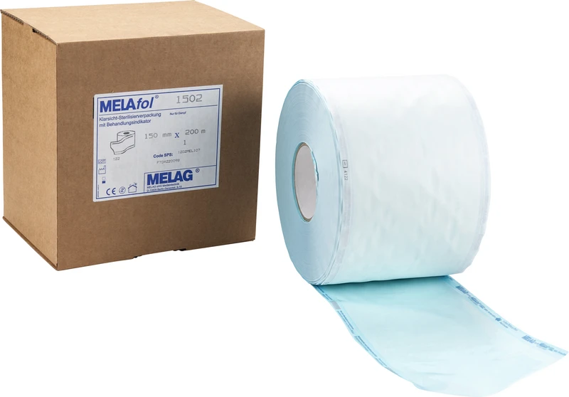 Keimdichte, heißsiegelfähige Klarsicht-Sterilisierverpackung nach EN 868-5. Die Papier und Kunststoff-Verbundfolie, ist reißfest, knitterarm und bequem zu öffnen ("peelbare" Siegelnähte).