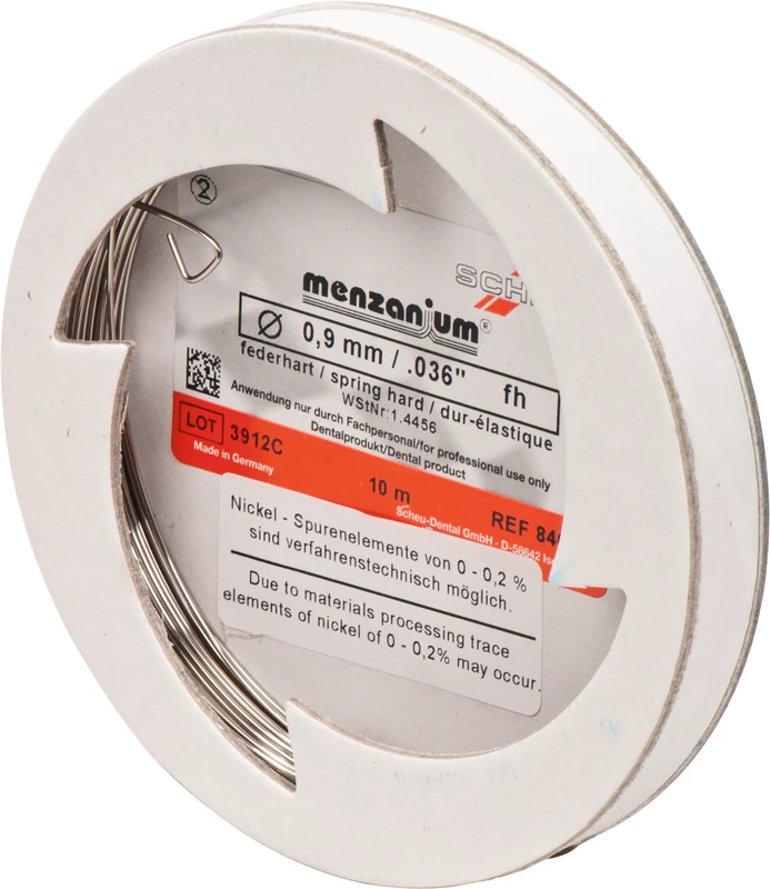 MENZANIUM® ist eine nickelfreie* Edelstahllegierung, bei der in einem patentierten Hochdruck-Schmelzverfahren Mangan und Stickstoff die allergenen Nickelanteile ersetzen. Gleichzeitig erhöht sich die Korrosionsbeständigkeit und Bruchfestigkeit im Vergleich zu herkömmlichen Edelstahldrähten. Unsere Spulendrähte aus MENZANIUM® sind diamantgezogen und hellglänzend. Die Verarbeitung ist durch Fügetechniken wie Lasern und Schweißen möglich.