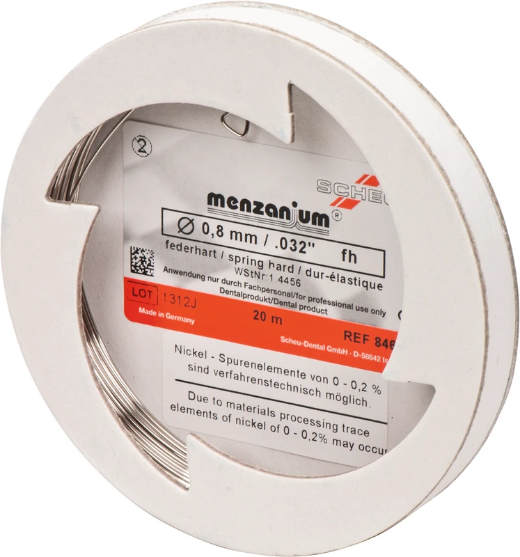 MENZANIUM® ist eine nickelfreie* Edelstahllegierung, bei der in einem patentierten Hochdruck-Schmelzverfahren Mangan und Stickstoff die allergenen Nickelanteile ersetzen. Gleichzeitig erhöht sich die Korrosionsbeständigkeit und Bruchfestigkeit im Vergleich zu herkömmlichen Edelstahldrähten. Unsere Spulendrähte aus MENZANIUM® sind diamantgezogen und hellglänzend. Die Verarbeitung ist durch Fügetechniken wie Lasern und Schweißen möglich.