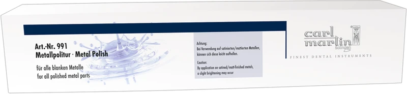 Instrumenten Politur für die Entfernung von Wasserflecken, Verfärbungen und organischen Rückständen auf blanken Metalloberflächen.