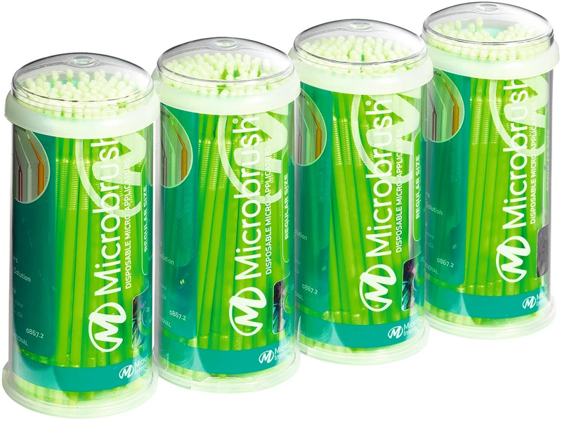 Original Microbrush® Applikatoren, beflockt mit nicht-absorbierenden Fasern. Biegbarer Hals, bleibt in der gewünschten Position und erleichtert das punktgenaue Platzieren von Flüssigkeiten und Gels (Lacke, Liner, Ätzmittel, Adhäsive u.v.m.) in schwer zu erreichenden Bereichen. Auch geeignet für Anfärbemittel.