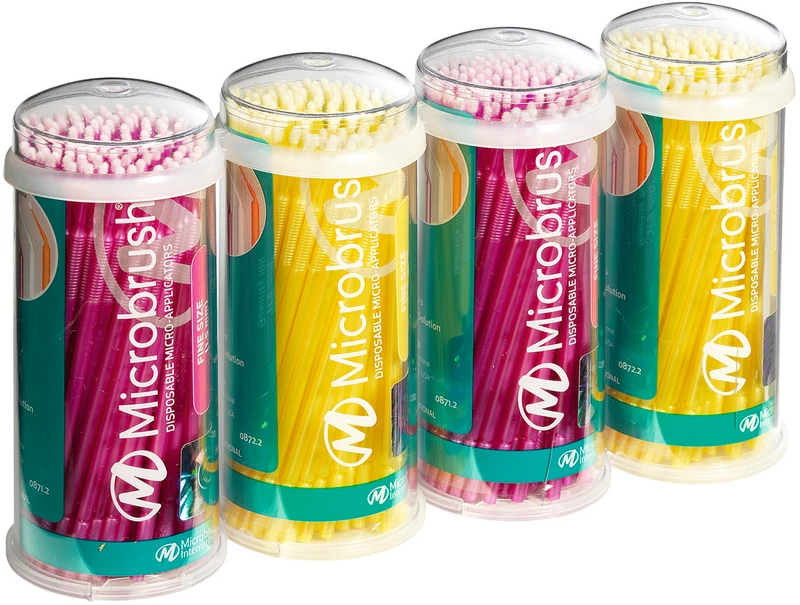 Original Microbrush® Applikatoren, beflockt mit nicht-absorbierenden Fasern. Biegbarer Hals, bleibt in der gewünschten Position und erleichtert das punktgenaue Platzieren von Flüssigkeiten und Gels (Lacke, Liner, Ätzmittel, Adhäsive u.v.m.) in schwer zu erreichenden Bereichen. Auch geeignet für Anfärbemittel.