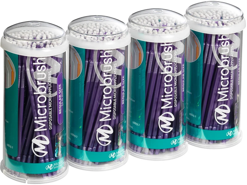 Original Microbrush® Applikatoren, beflockt mit nicht-absorbierenden Fasern. Biegbarer Hals, bleibt in der gewünschten Position und erleichtert das punktgenaue Platzieren von Flüssigkeiten und Gels (Lacke, Liner, Ätzmittel, Adhäsive u.v.m.) in schwer zu erreichenden Bereichen. Auch geeignet für Anfärbemittel.