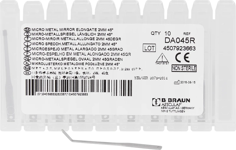 Mikro-Metallspiegel Packung 10 Stück 45° gewinkelt, Länge 50 mm, Breite 2 mm