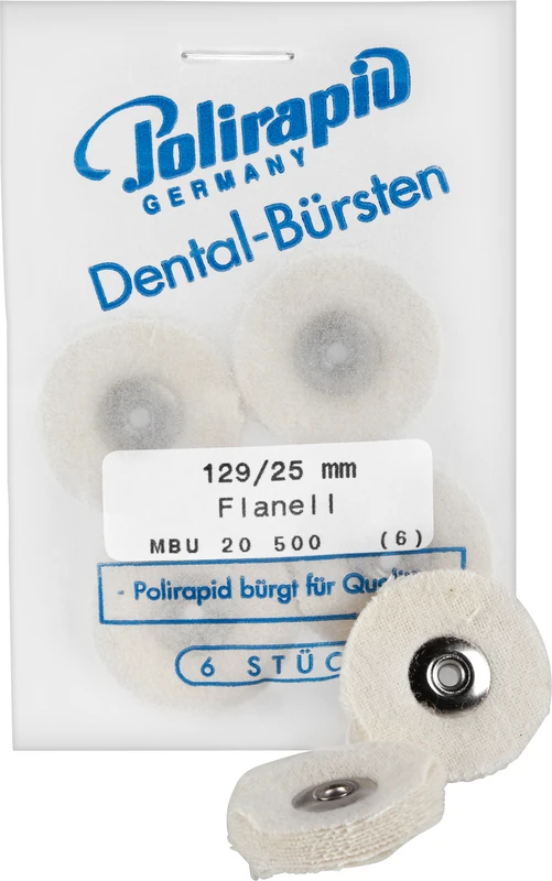 Miniaturbürsten Scheibe Packung 6 Stück unmontiert, Flanellstoff weich, Ø 25 mm