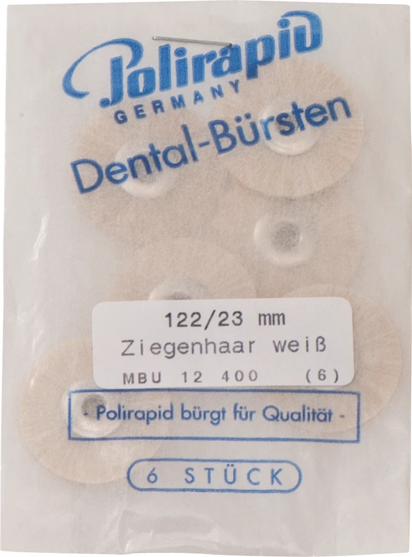 Packung 6 Bürsten unmontiert, weiß sehr weich, Ziegenhaar, Ø 23 mm