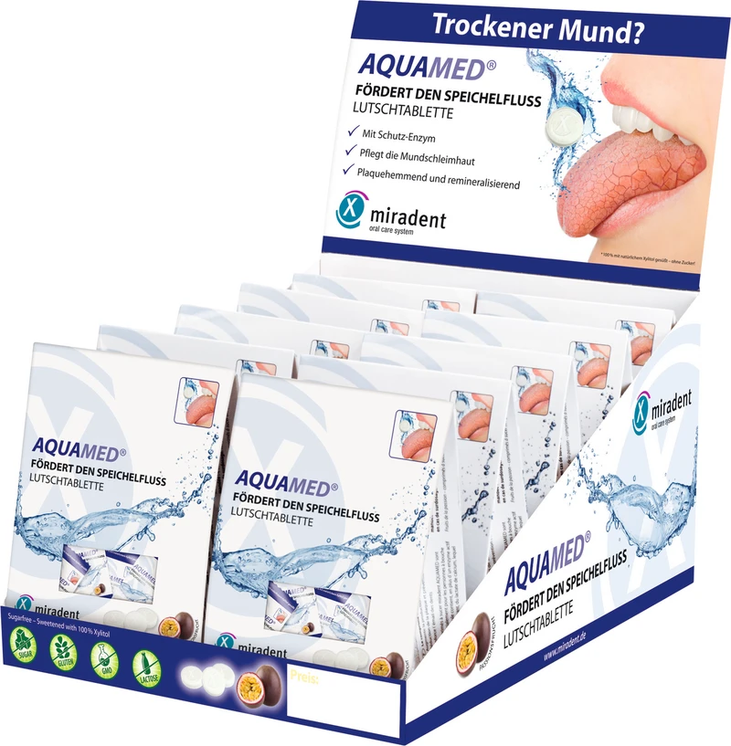 Produktinformationen "miradent Aquamed® Lutschtabletten Display Packung 10 x 26 Stück"