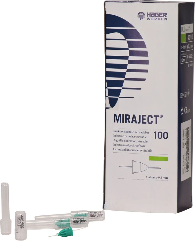 Produktinformationen "MIRAJECT® Injektionskanülen Packung 100 Stück gelb, Ø 0,3 mm, G30 40\10 x-kurz (für die intraligamentäre Anästhesie)"
