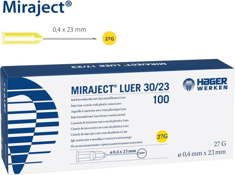 Produktinformationen "MIRAJECT® LUER Packung 100 Stück gelb, G27 Ø 0,4 x 23mm"
