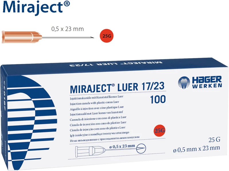 Produktinformationen "MIRAJECT® LUER Packung 100 Stück rot, G25 Ø 0,5 x 23mm"