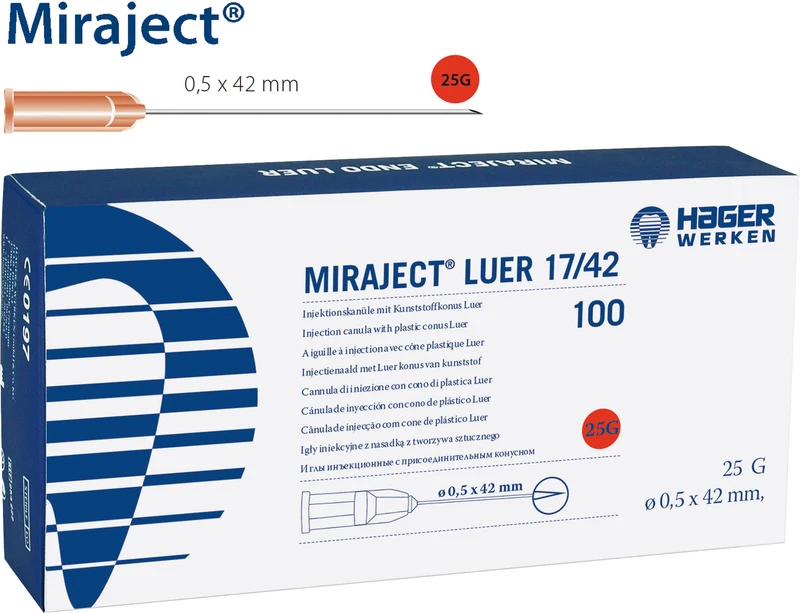 Produktinformationen "MIRAJECT® LUER Packung 100 Stück rot, G25 Ø 0,5 x 42mm"