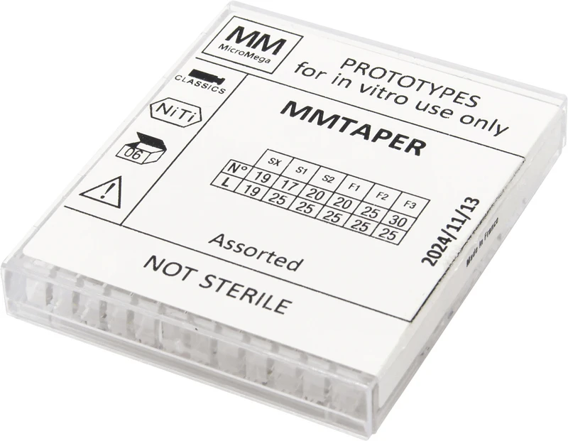 MM TAPER bietet eine vertraute Sequenz und integriert gleichzeitig das einzigartige Design- und Fertigungs-Know-how von Micro-Mega. Das System garantiert optimale Flexibilität und hohe Schnittleistung und passt sich so auch komplexen Wurzelkanalanatomien an. Dank seiner kontrollierten Formgedächtnislegierung und des variablen Kegels ermöglicht MM TAPER eine zuverlässige Formgebung bei gleichzeitiger Reduzierung der Betriebsrisiken. Diese Markteinführung bestätigt das Engagement von Micro-Mega für Exzellenz in der Endodontie Made in France.